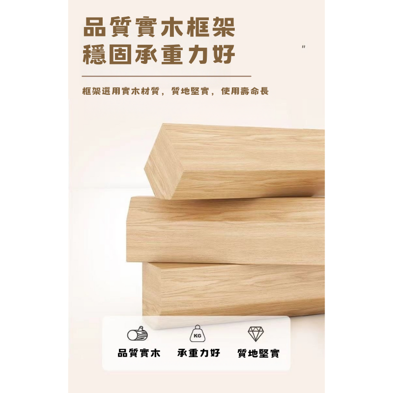 穩固實木框架: 採用堅固的實木框架結構,承重力強,使用更安心。
