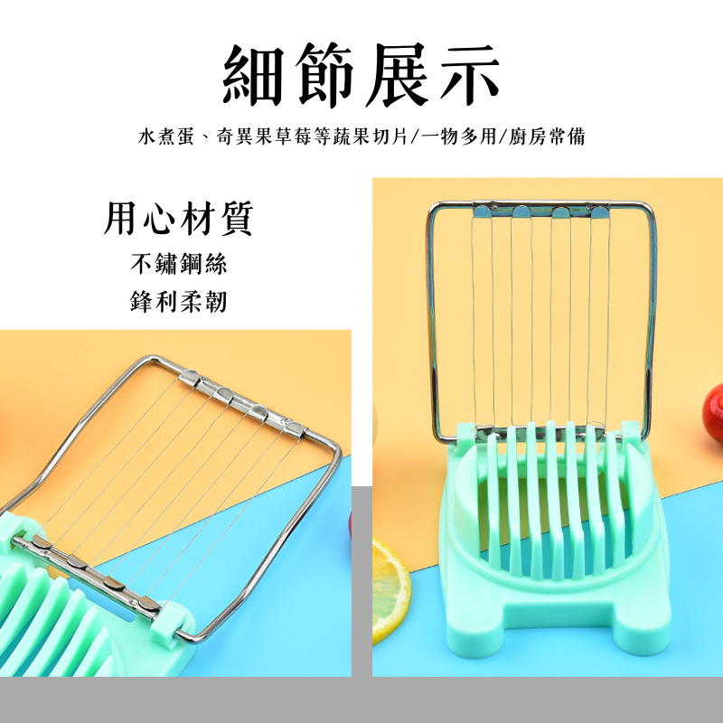 為您的廚房帶來便捷與樂趣!這款多功能切蛋神器,採用食品級PP材質和不鏽鋼刀片,讓您輕鬆切出均勻美觀的雞蛋片、草莓片等。無論是製作精美沙拉,還是準備美味早餐,都能得心應手。