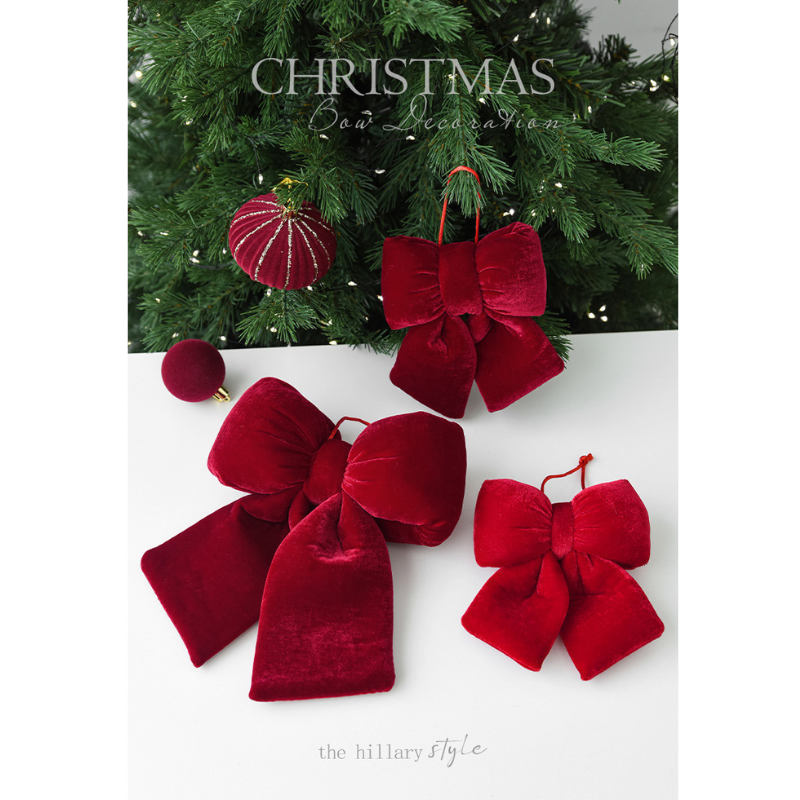 以觸感溫潤的絲絨,打造出優雅的聖誕蝴蝶結裝飾,為您的居家空間注入一絲低調奢華的質感。無論是鮮豔的大紅色,或是內斂的酒紅色,都能完美襯托出您的好品味。