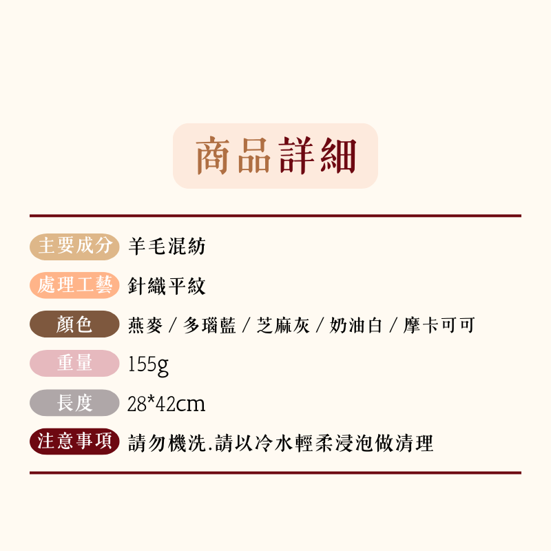 羊毛混紡保暖圍巾,為您帶來極致的舒適與溫暖。採用高品質羊毛混紡面料,觸感柔軟,保暖性極佳。簡約設計,多種顏色可選,輕鬆搭配各種服裝,是您秋冬季節的必備單品。